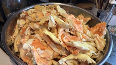 어제 동네 숲에서 발견한 치킨 버섯을 양이 너무 많아 일부만 어제 채취해서 먹어 보았더니 너무 맛이 좋아 오늘 아침 일찍 숲으로 출근해서 남은 것을 몽땅 채취해 와서 깨끗하게 세척하니 큰 ...